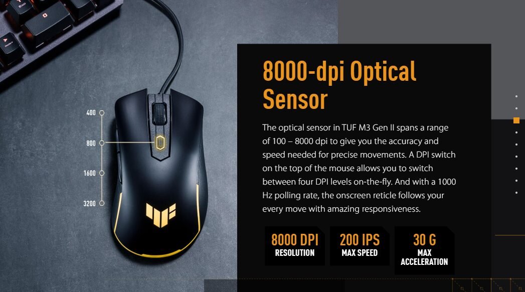 Max DPI / Speed / Acceleration 8,000 dpi / 200 ips / 30 g