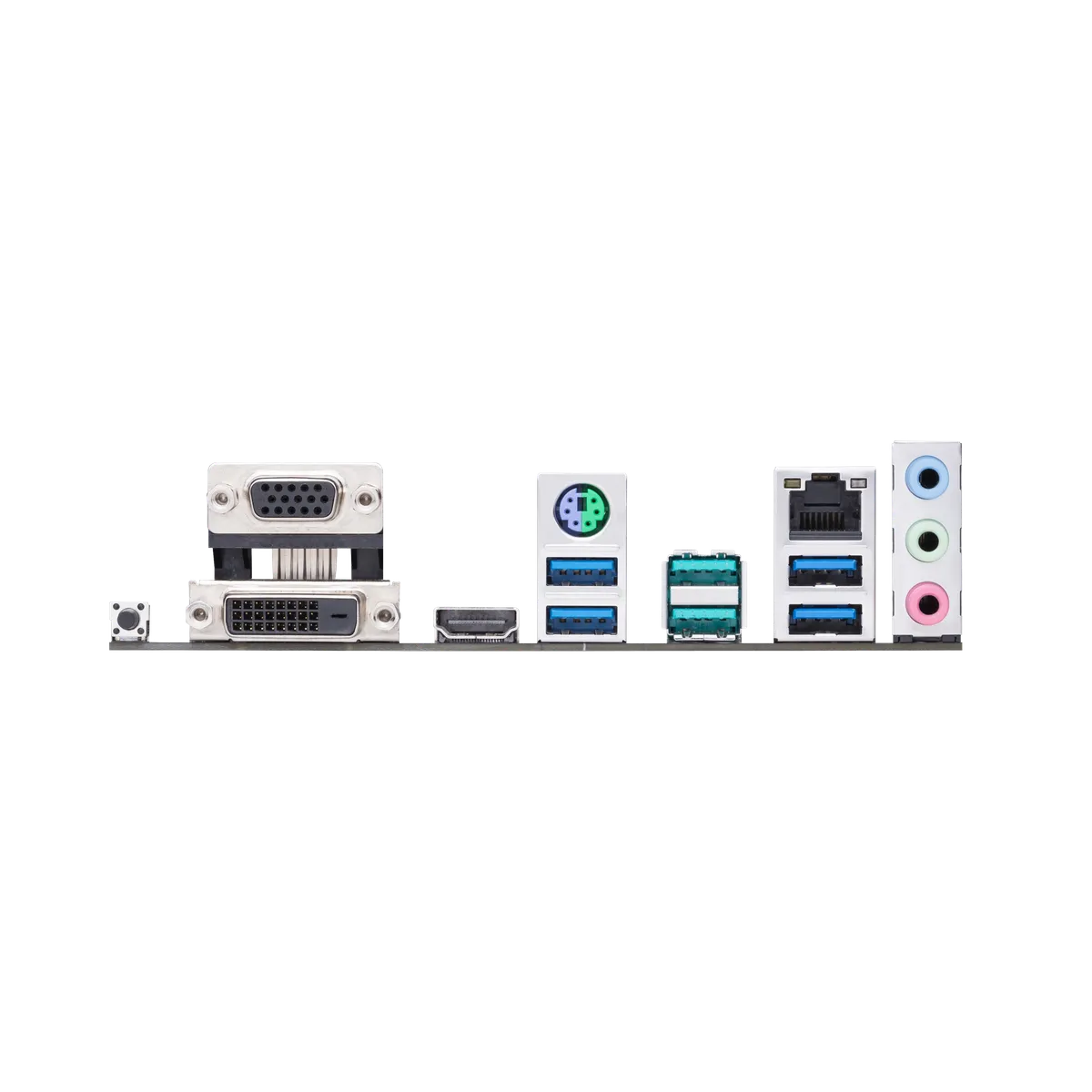 | Back I/O Ports | 1 x PS/2 keyboard/mouse combo port(s) 1 x DVI-D 1 x D-Sub 1 x HDMI 1 x LAN (RJ45) port(s) 2 x USB 3.2 Gen 2 (teal blue) (2 x Type-A) 4 x USB 3.2 Gen 1 (blue) Type-A 3 x Audio jack(s) 1 x BIOS FlashBack™ Button(s) |
