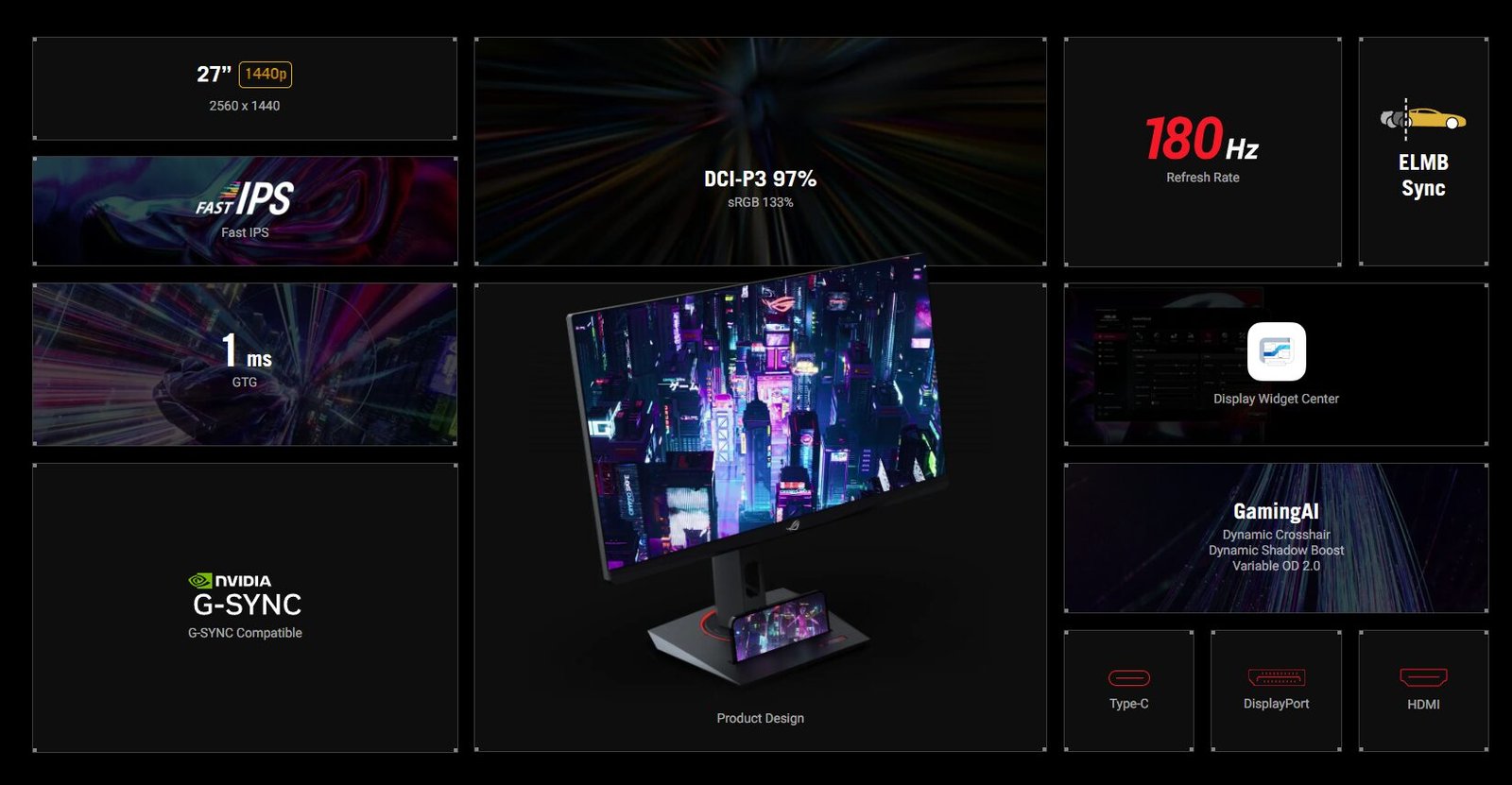 ASUS ROG Strix XG27ACS 27″ 180hz Fast IPS QHD 1ms (DP/HDMI/Type C)