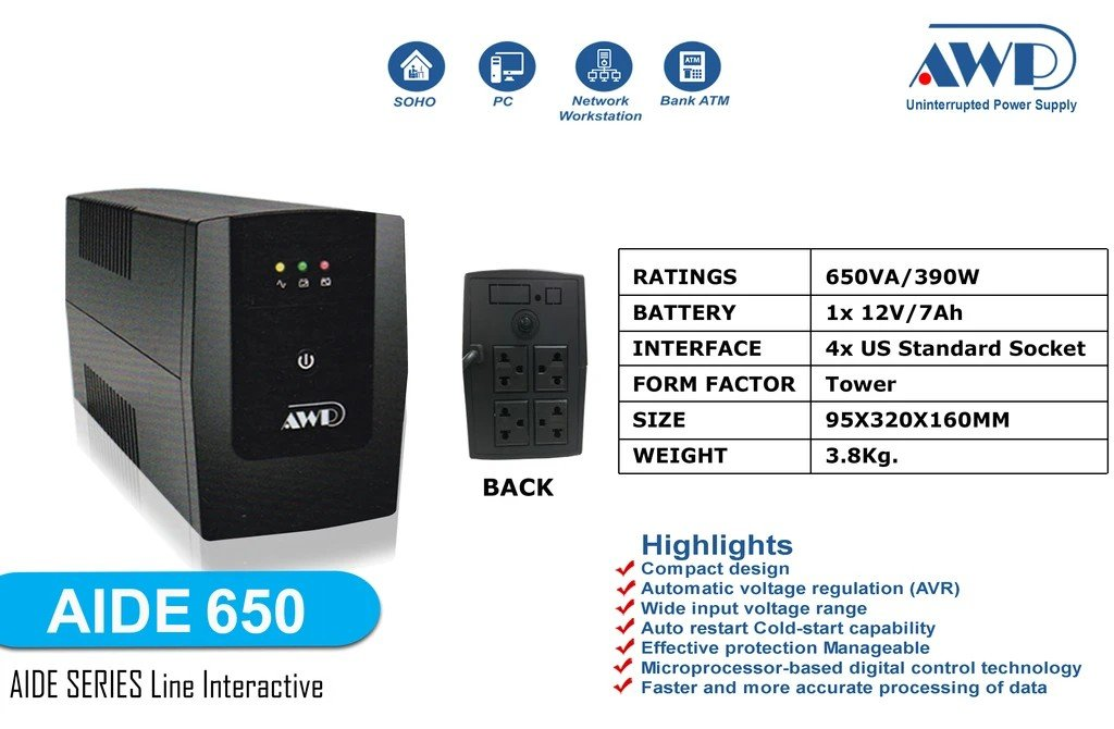 AWP AID650 650VA (390W) UPS w/ AVR (4-Socket)