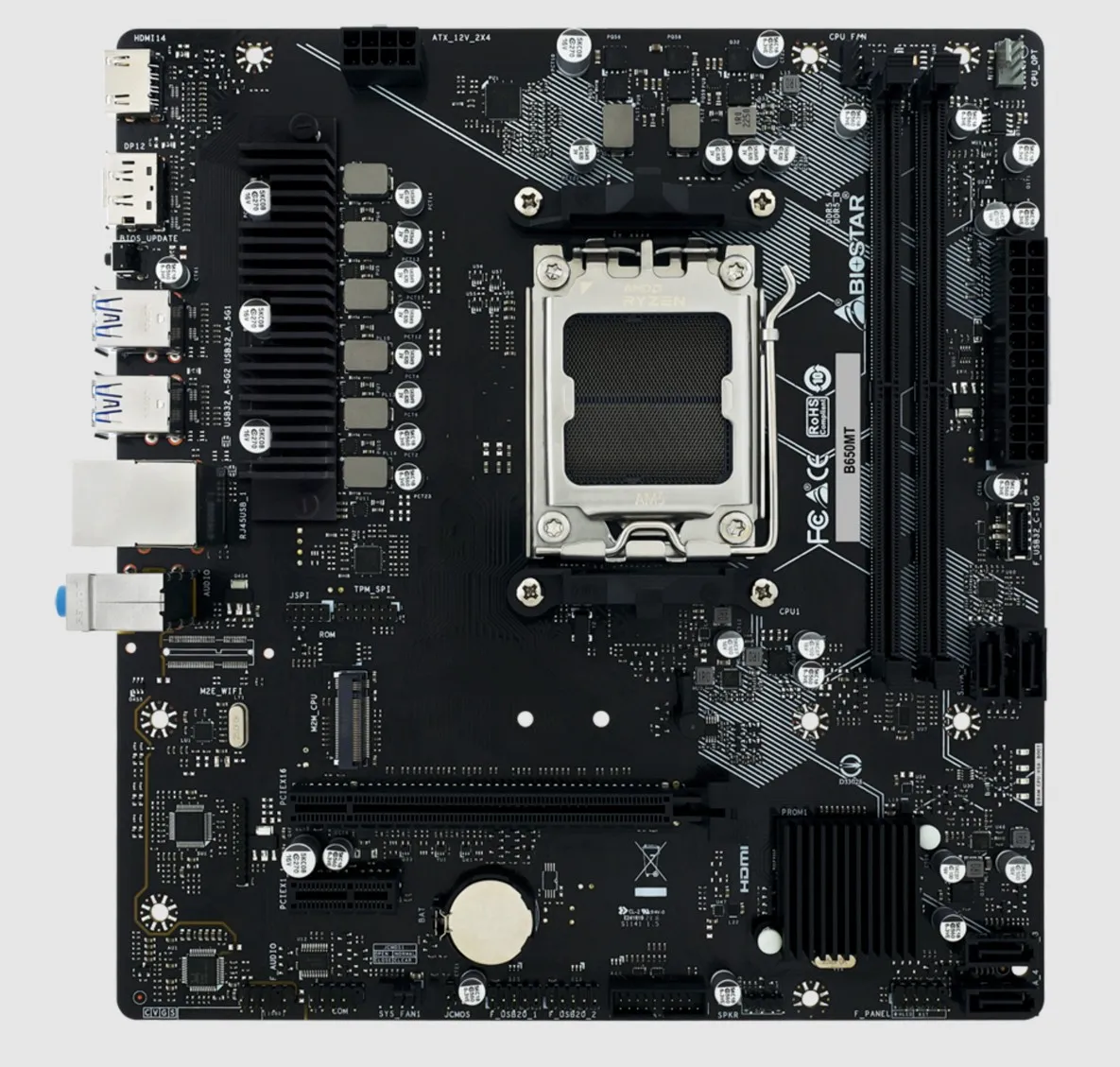 | CPU SUPPORT | Socket AM5 support AMD Ryzen™ 7000 / 8000 / 9000 series Processors Support for future AMD Ryzen processors with BIOS update * Please refer to www.biostar.com.tw for CPU support list. |