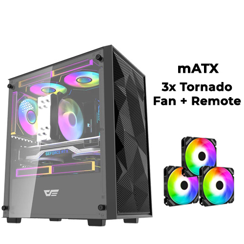 DarkFlash M305 Mesh (Black) w/ 3x Tornado Fans + Remote