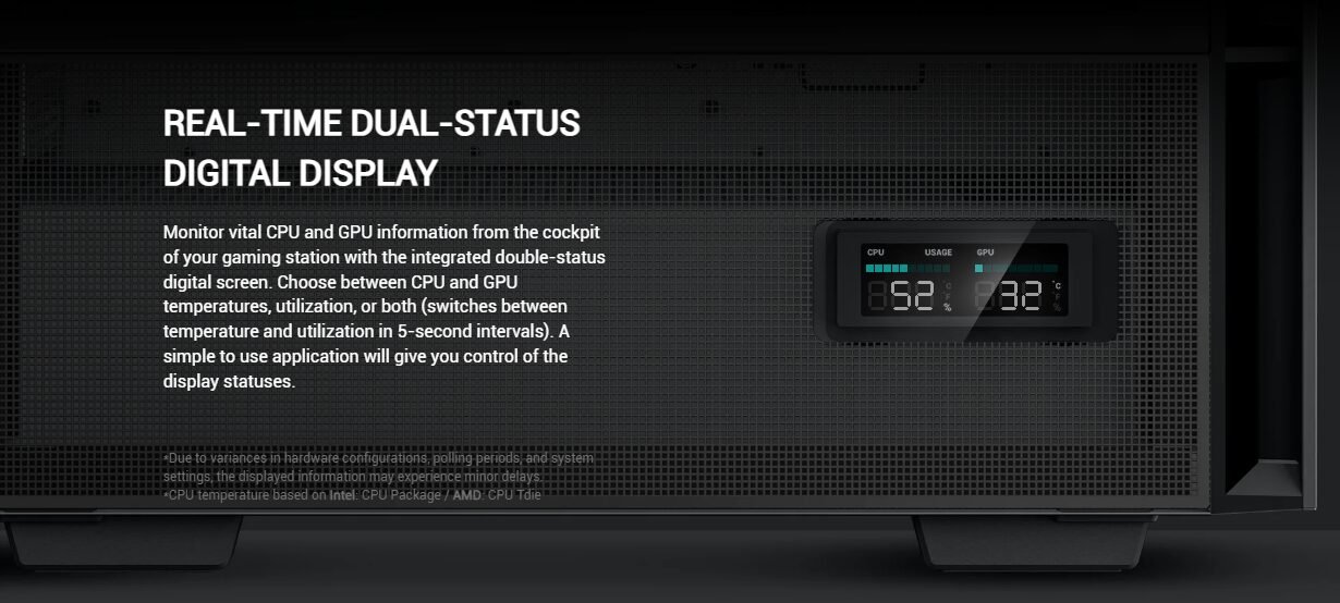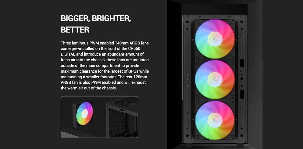 | Pre-Installed Fans | Front: 3×140mm ARGB Rear: 1×120mm ARGB |
