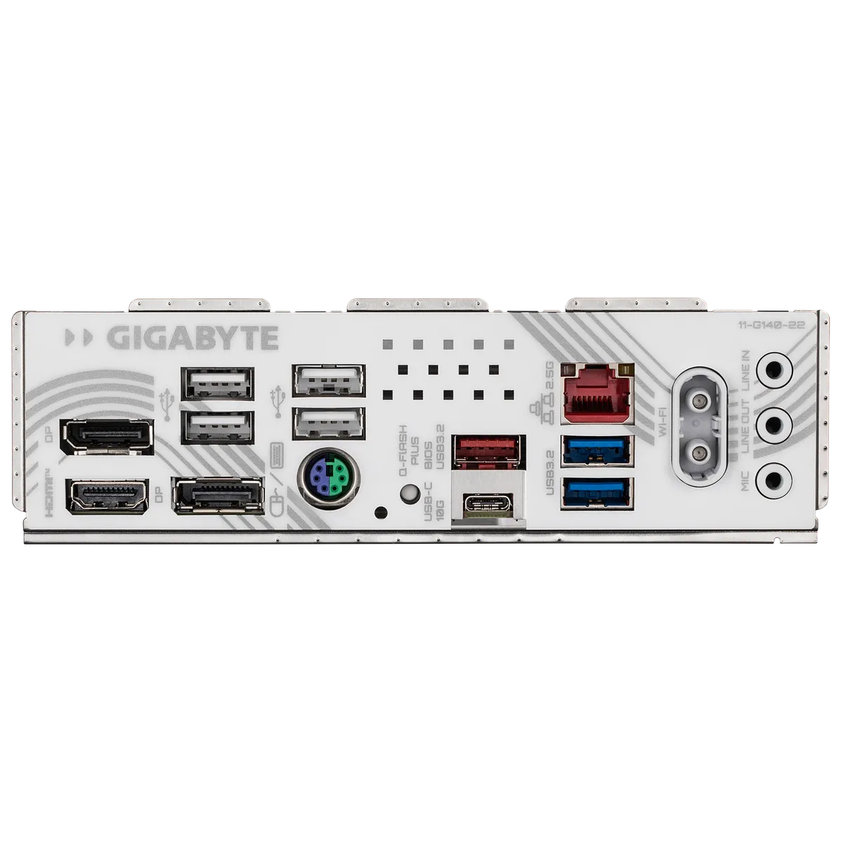 | Back Panel Connectors | 1 x HDMI port (Note) 2 x DisplayPorts (Note) 1 x Q-Flash Plus button 1 x PS/2 keyboard/mouse port 1 x USB 3.2 Gen 2 Type-A port (red) 1 x USB Type-C® port, with USB 3.2 Gen 2 support 2 x USB 3.2 Gen 1 ports 4 x USB 2.0/1.1 ports 1 x RJ-45 port 2 x antenna connectors (2T2R) 3 x audio jacks |
