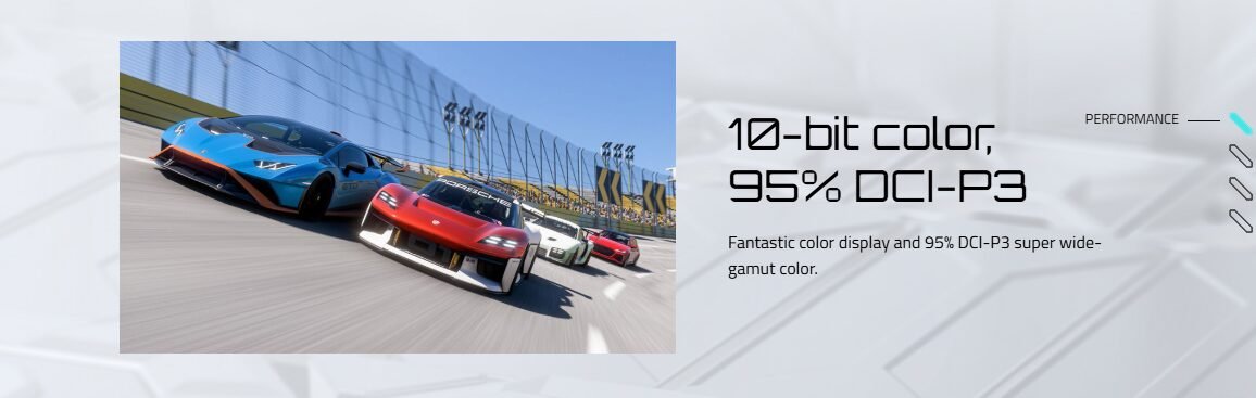 | Color Saturation | 95% DCI-P3 / 130% sRGB |