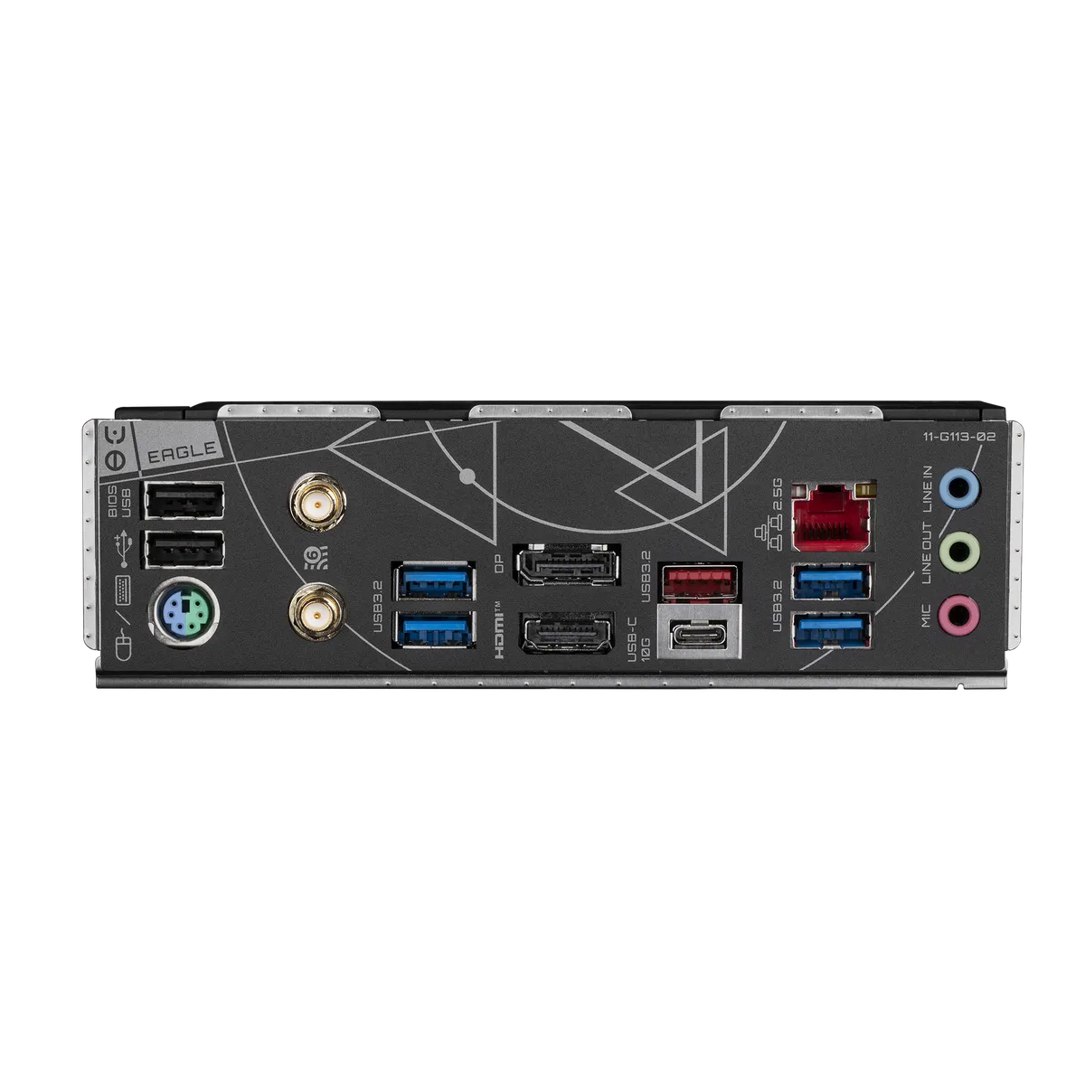 | Back Panel Connectors | 1 x PS/2 keyboard/mouse port 1 x USB Type-C® port, with USB 3.2 Gen 2 support 1 x USB 3.2 Gen 2 Type-A port (red) 4 x USB 3.2 Gen 1 ports 2 x USB 2.0/1.1 ports 2 x SMA antenna connectors (1T1R) 1 x HDMI port 1 x DisplayPort 1 x RJ-45 port 3 x audio jacks |