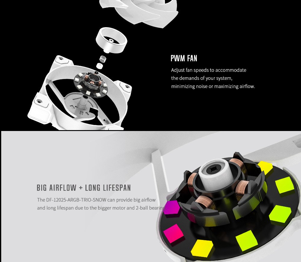 | Â Rated Voltage | Â 12VDC (PWM)Â / 5V (ARGB) |