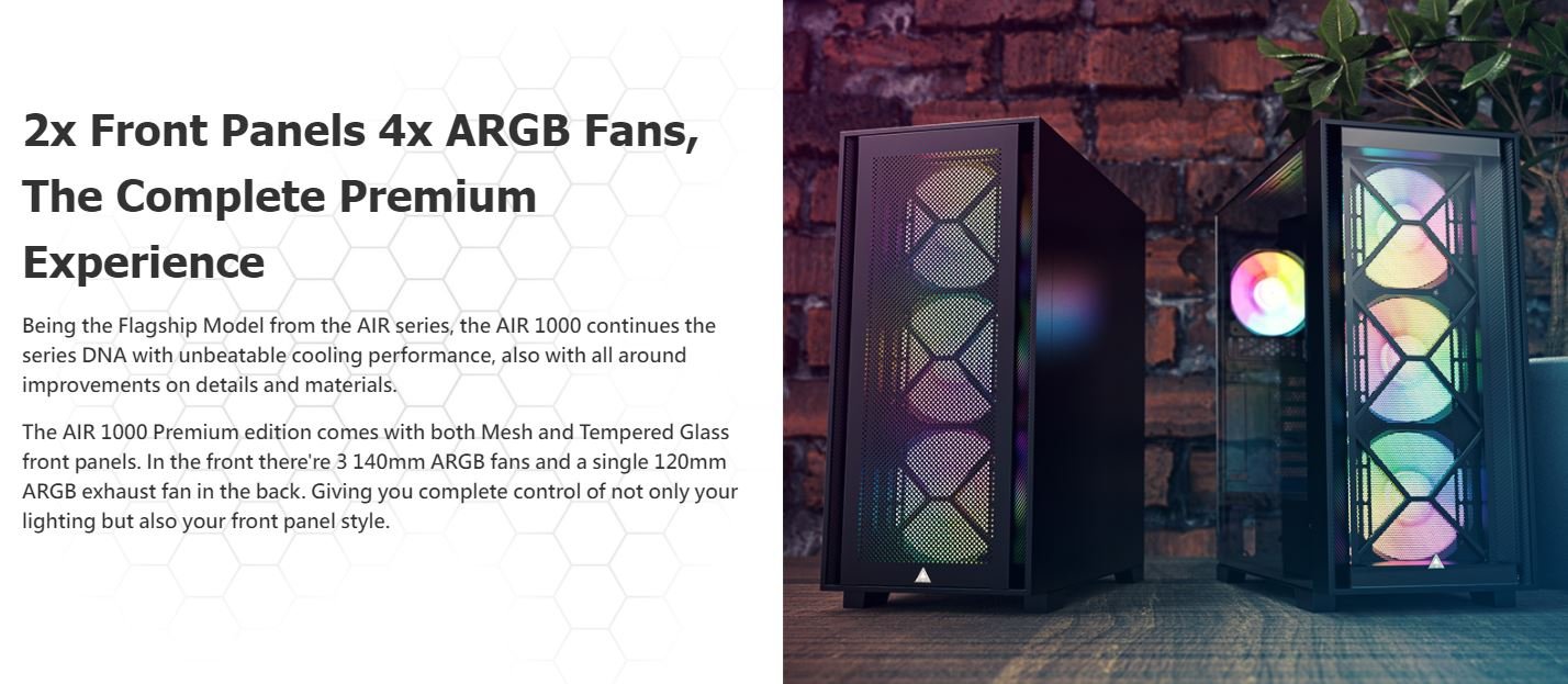 Montech AIR 1000 Premium (Black) ATX Case w/ 4x ARGB Fan
