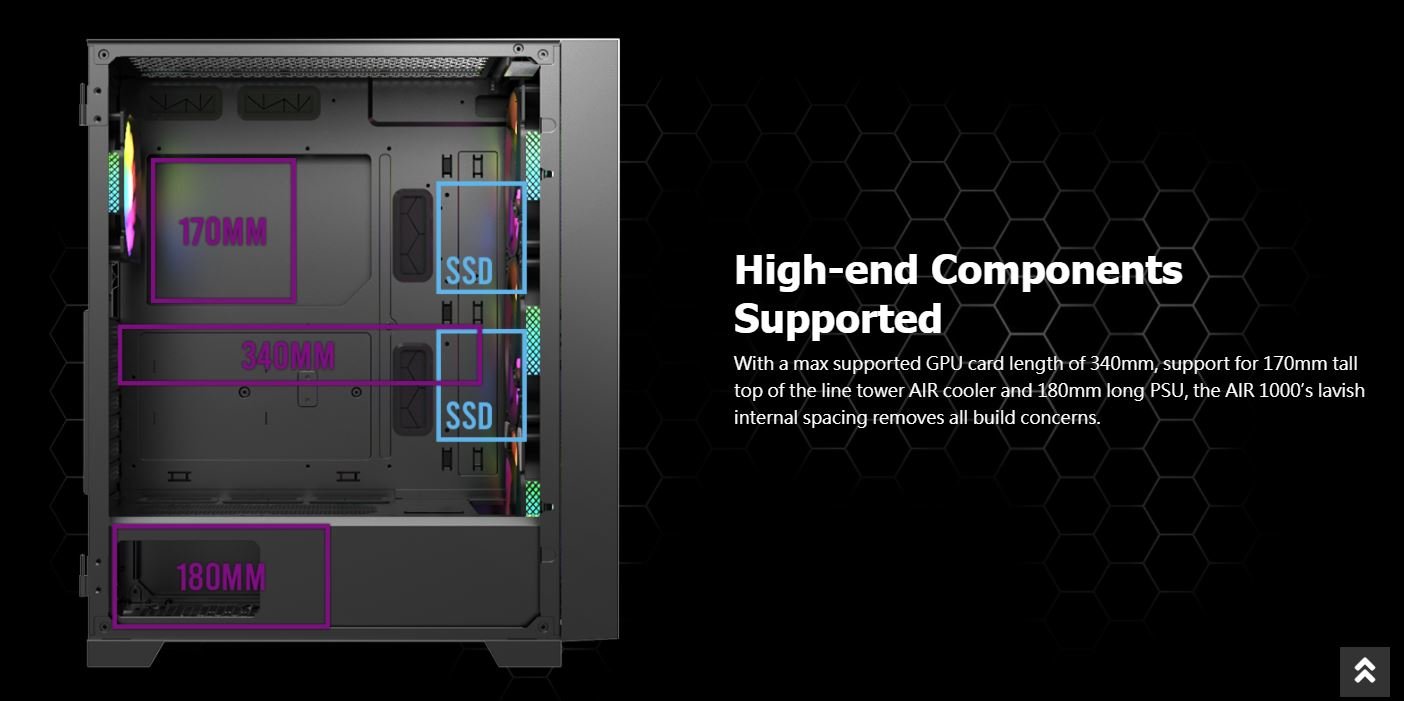 PSU: 180mm High-End Power Supply (200mm if HDD cage removed)