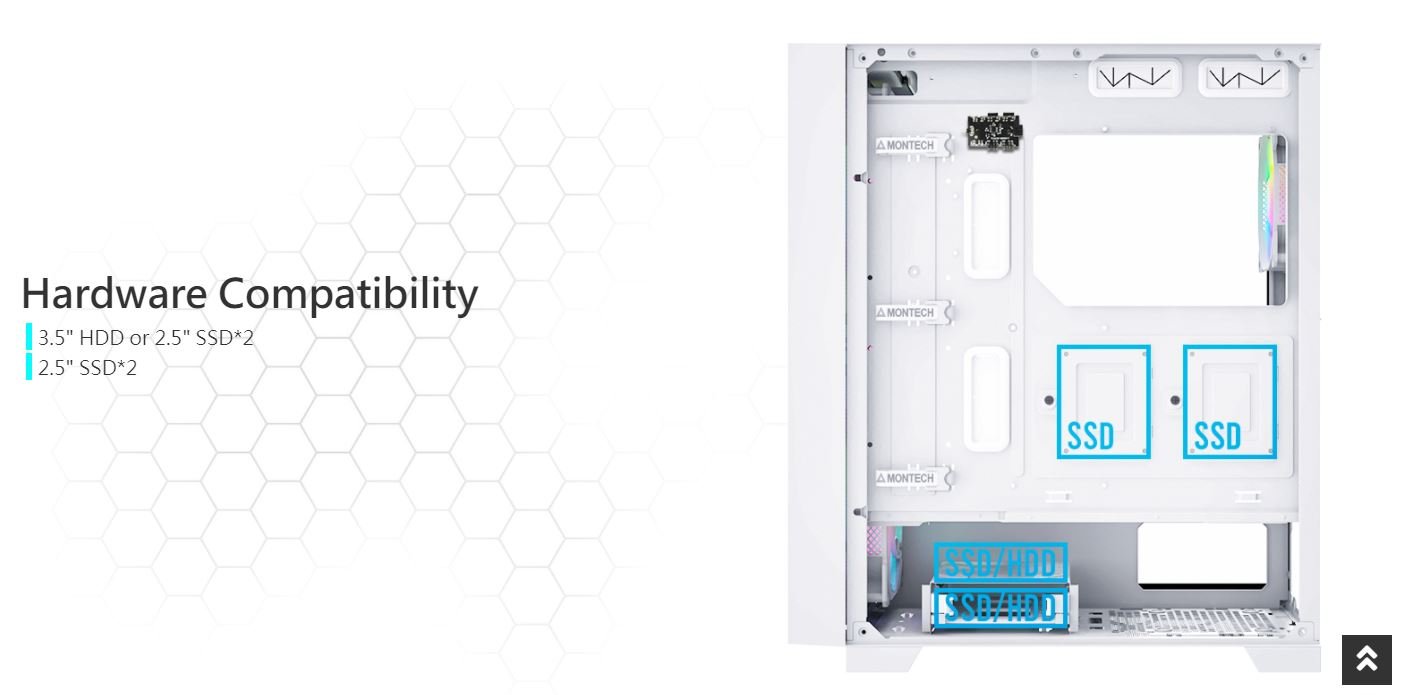 Front: 140mm*3 (ARGB Fan) Rear: 120mm*1 (ARGB Fan) |