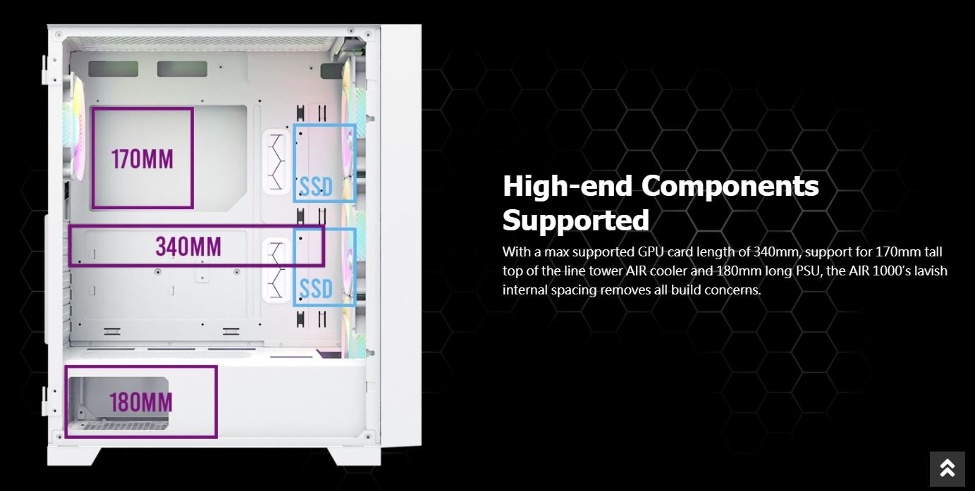 CPU Cooler: 170mm PSU: 180mm High-End Power Supply (200mm if HDD cage removed) |