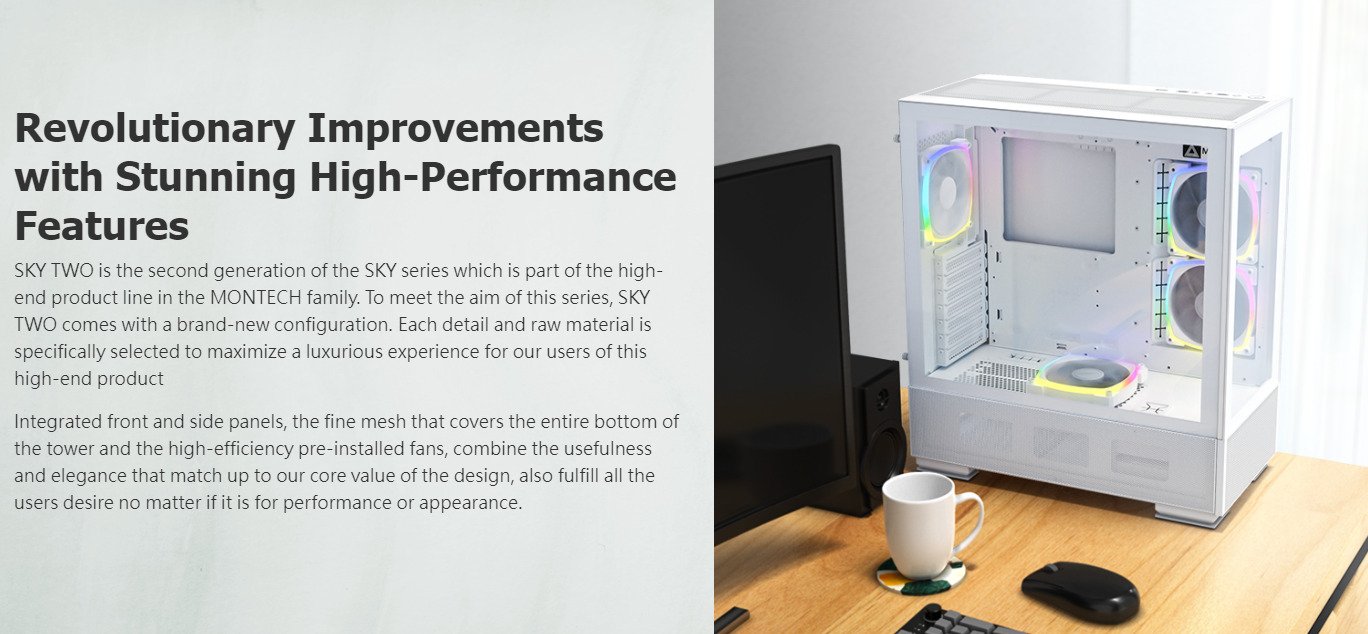 Montech Sky Two (White) w/ 4x ARGB Fans