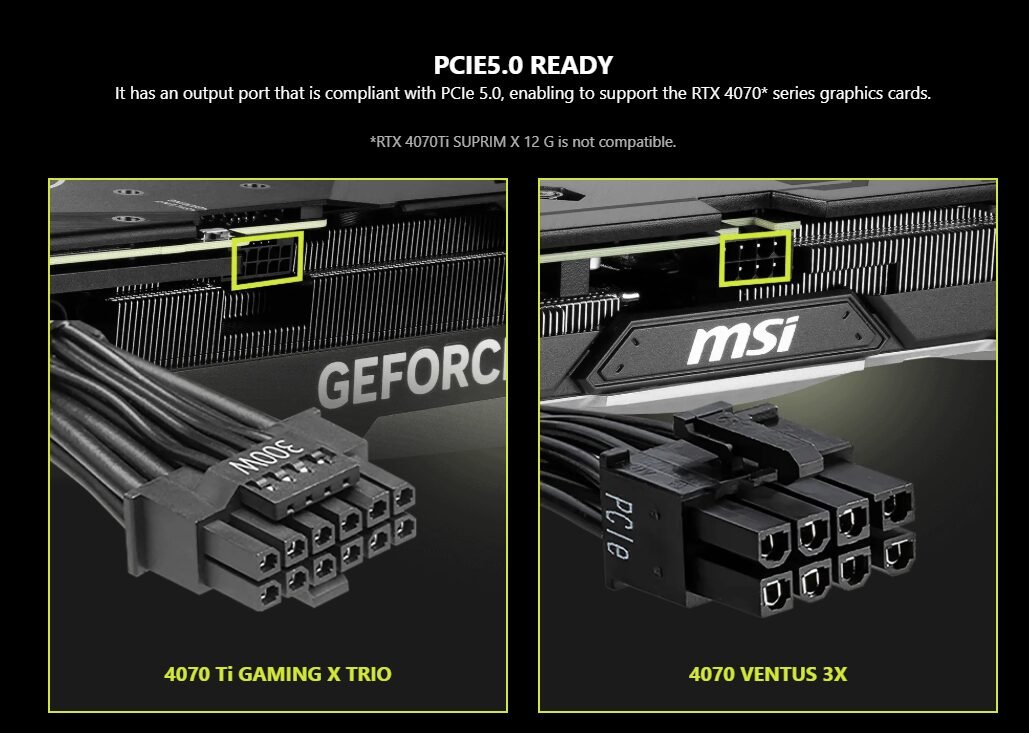 - 1x 16 Pin PCIE 5.0 (up to 300w)