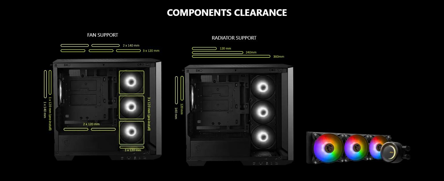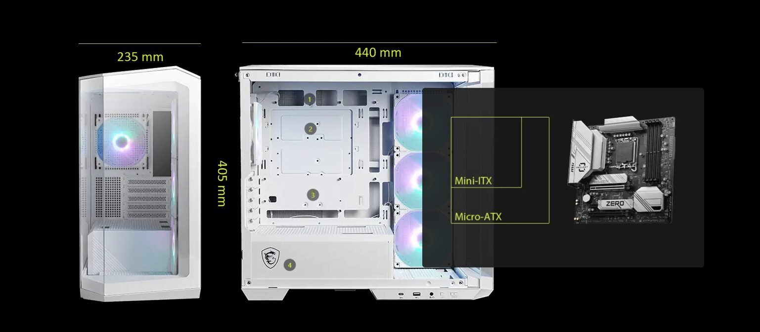 MSI MAG PANO M100R PZ (Black) w/ 4x Fans (mATX/BTF)