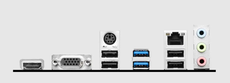 | Back Panel Ports | 1 x HDMI 1 x VGA 1 x PS/2 combo 2 x USB 3.2 Gen1 4 x USB 2.0 1 x LAN audio jacks |