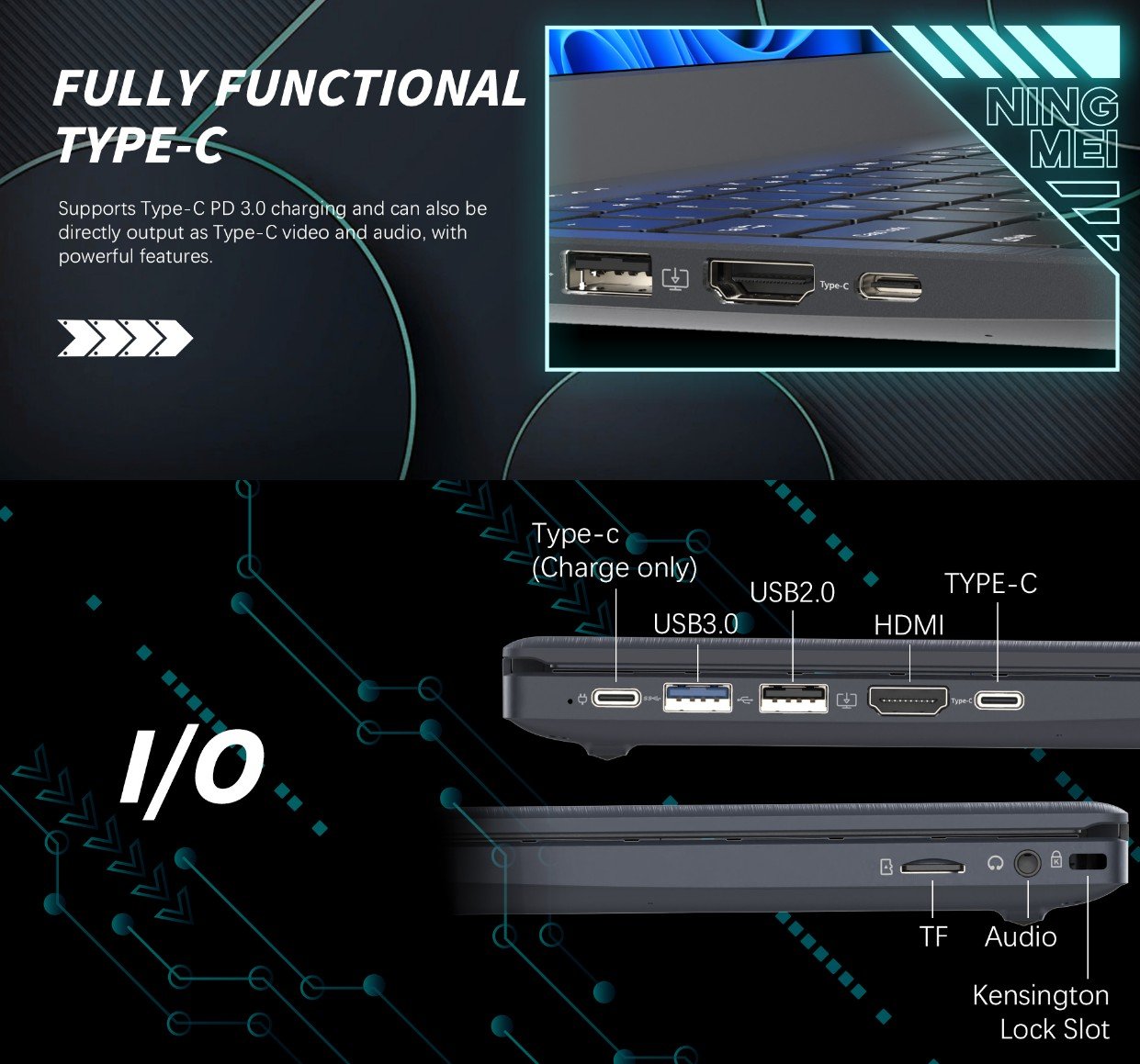 | I/O Port | 1x USB-A 3.2 Gen1 1x USB-A 2.0 1x USB-C Full function 1x HDMI 1.4 1x 3.5mm audio 1x TF 1x Type C charging port |