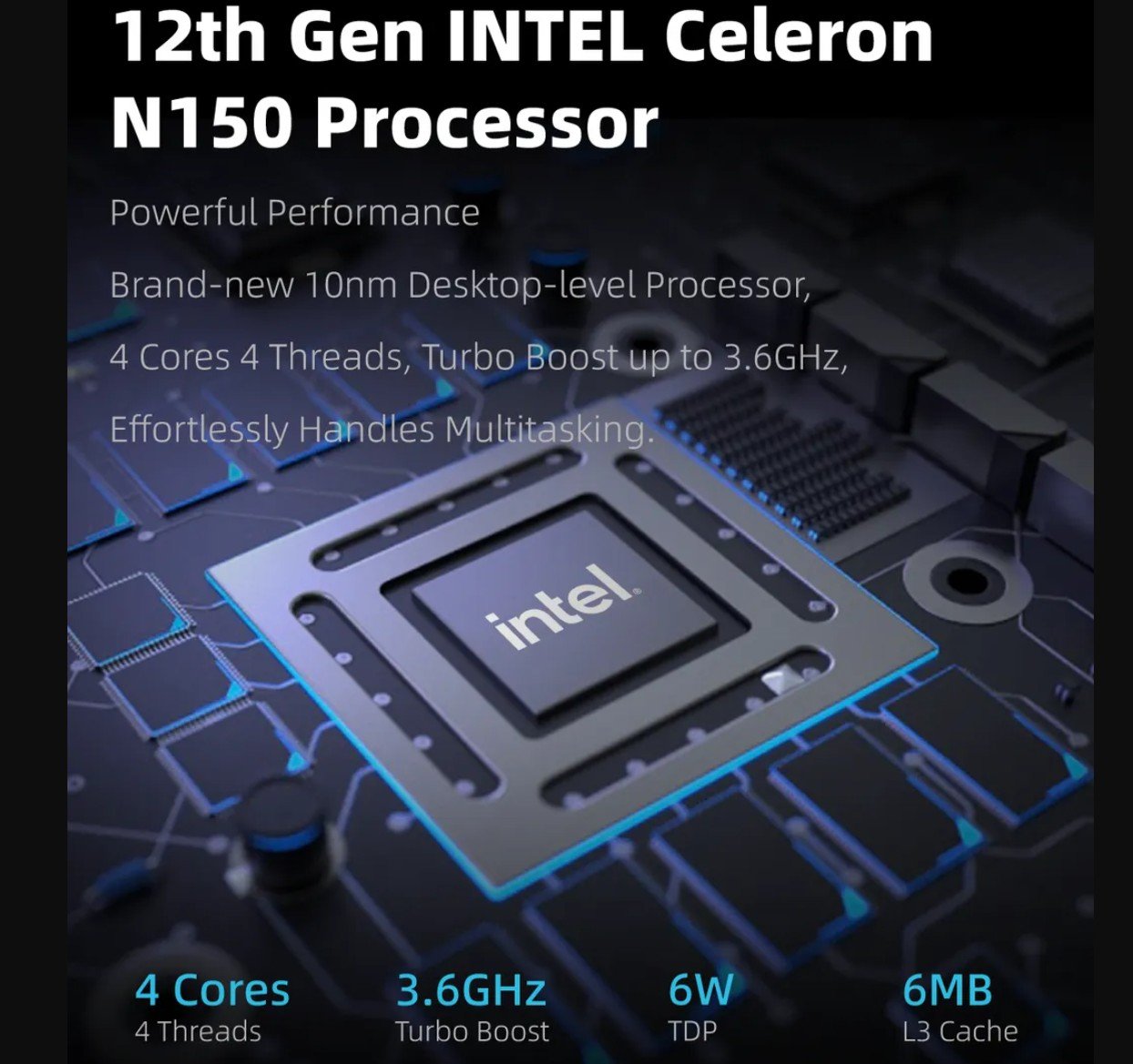 | CPU | Intel® Celeron® N5095 (4-cores 4-threads, up to 2.9GHz, 4mb cache) |
