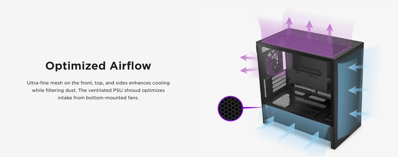 NZXT H3 Flow (Black/White) (mATX) with pre-installed 1x Fan