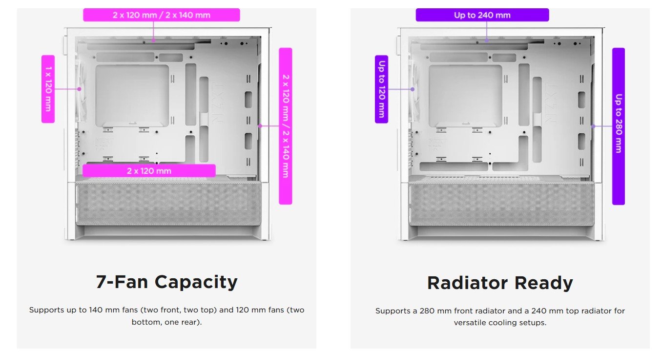 | Max Front Radiator + Fan Thickness | Up to 63 mm |
