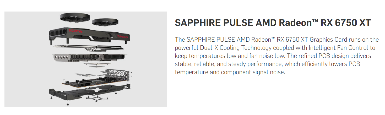 | Sapphire Features | Premium Digital Power Design Fuse Protection High TG Copper PCB Optimized Composite Heatpipe Dual-X Cooling Technology Intelligent Fan Control Precision Fan Control Metal Backplate with Thermal Pad Two-Ball Bearing Fans TriXX Supported TriXX Boost |