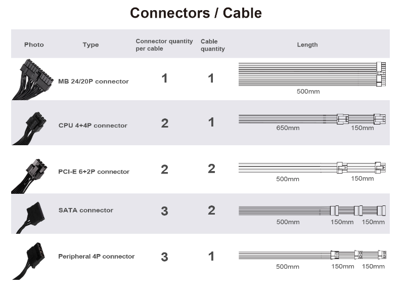| Output | +3.3V | +5V | +12V | +5VSB | -12V |