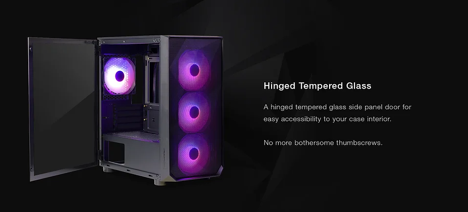 | Other Features | Black Case Wires Top Magnetic Filter and Bottom PSU Filter Hinged Tempered Glass Side Panel (Detachable) 22mm Cable Management Space |