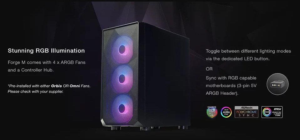 Tecware Forge M (Black) w/ 4pcs ARGB Fan