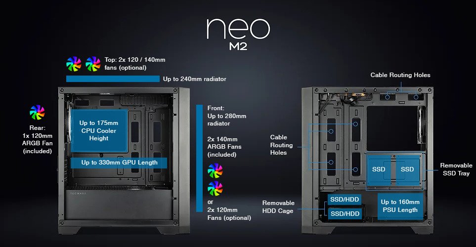 Tecware Neo M2 (Black) w/ 2x 140mm, 1x 120mm fan