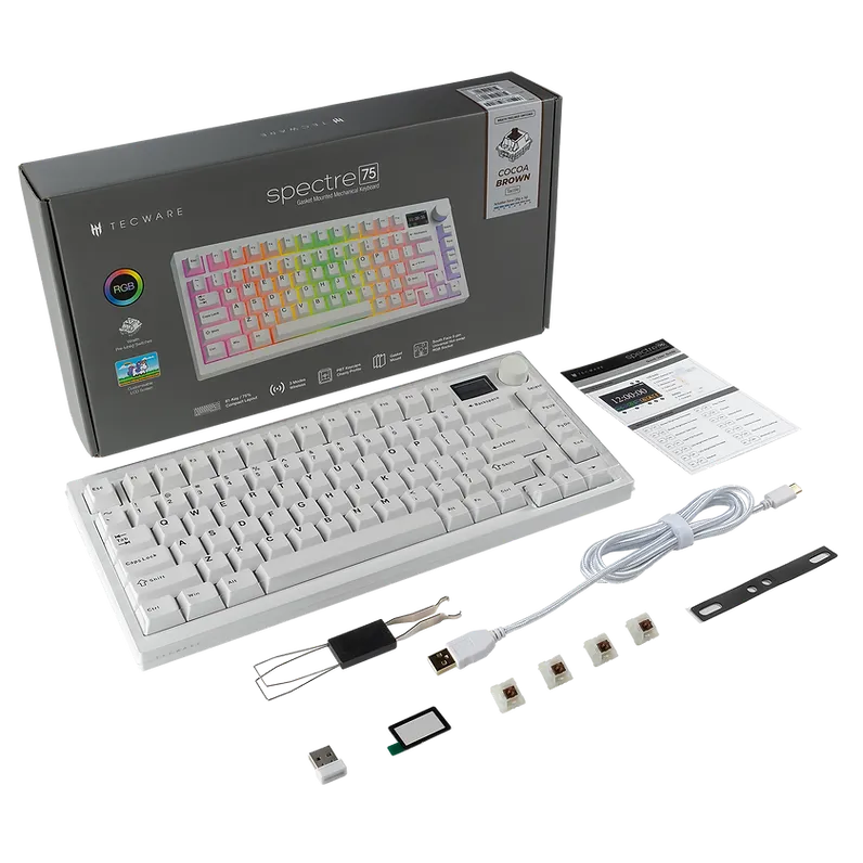Tecware Spectre LCD (White) Wireless Tri-Mode 75-keys Red Switch Mech Keyboard