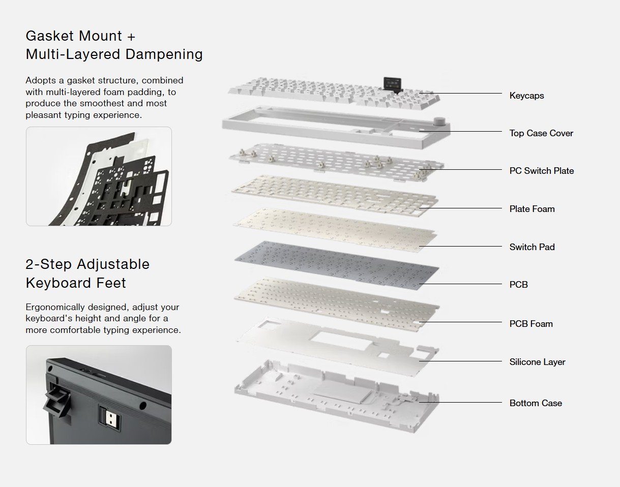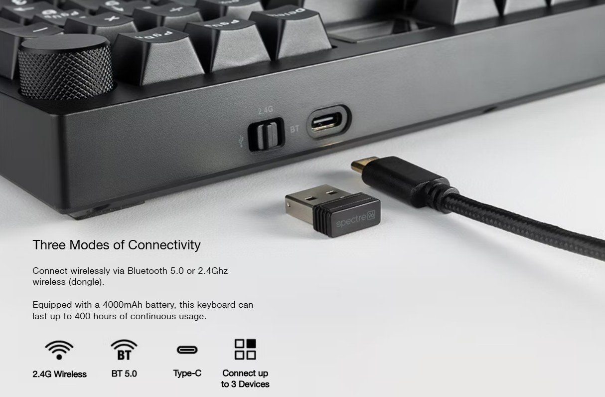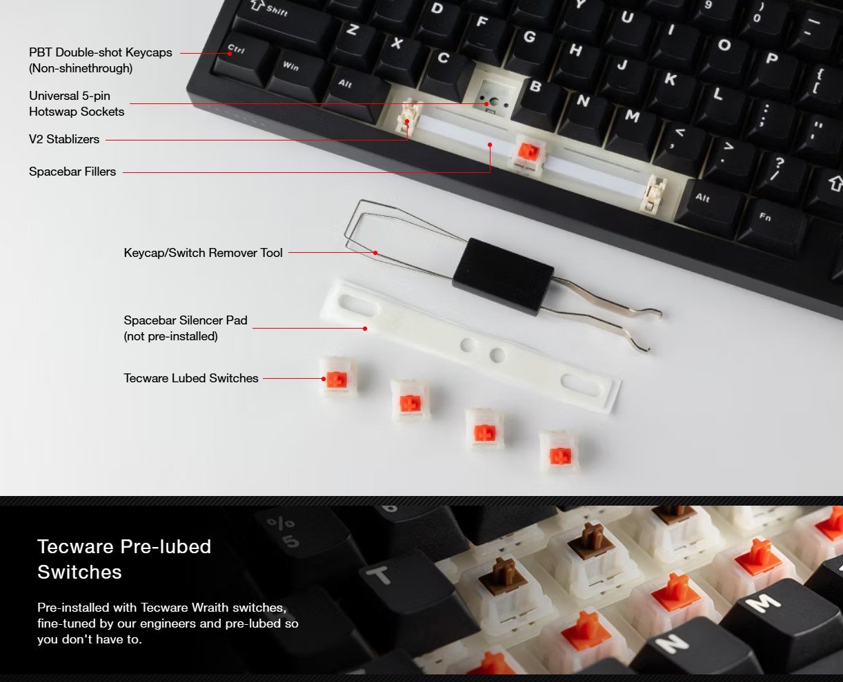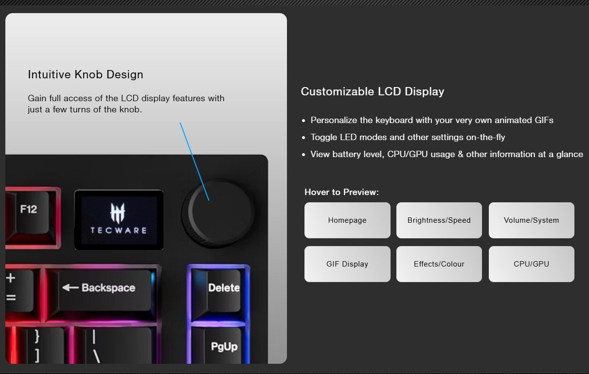 Tecware Spectre LCD (White) Wireless Tri-Mode 75-keys Red Switch Mech Keyboard