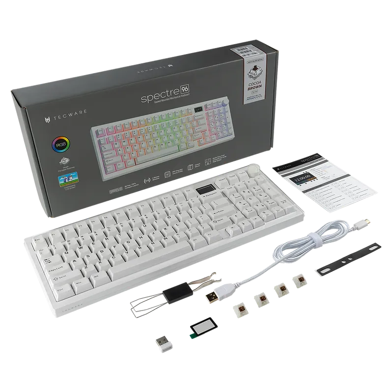 Tecware Spectre LCD (White) Wireless Tri-Mode 96-keys Red Switch Mech Keyboard