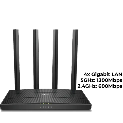 600 Mbps on 2.4 GHz, 1300 Mbps on 5 GHz, 4x Gigabit LAN