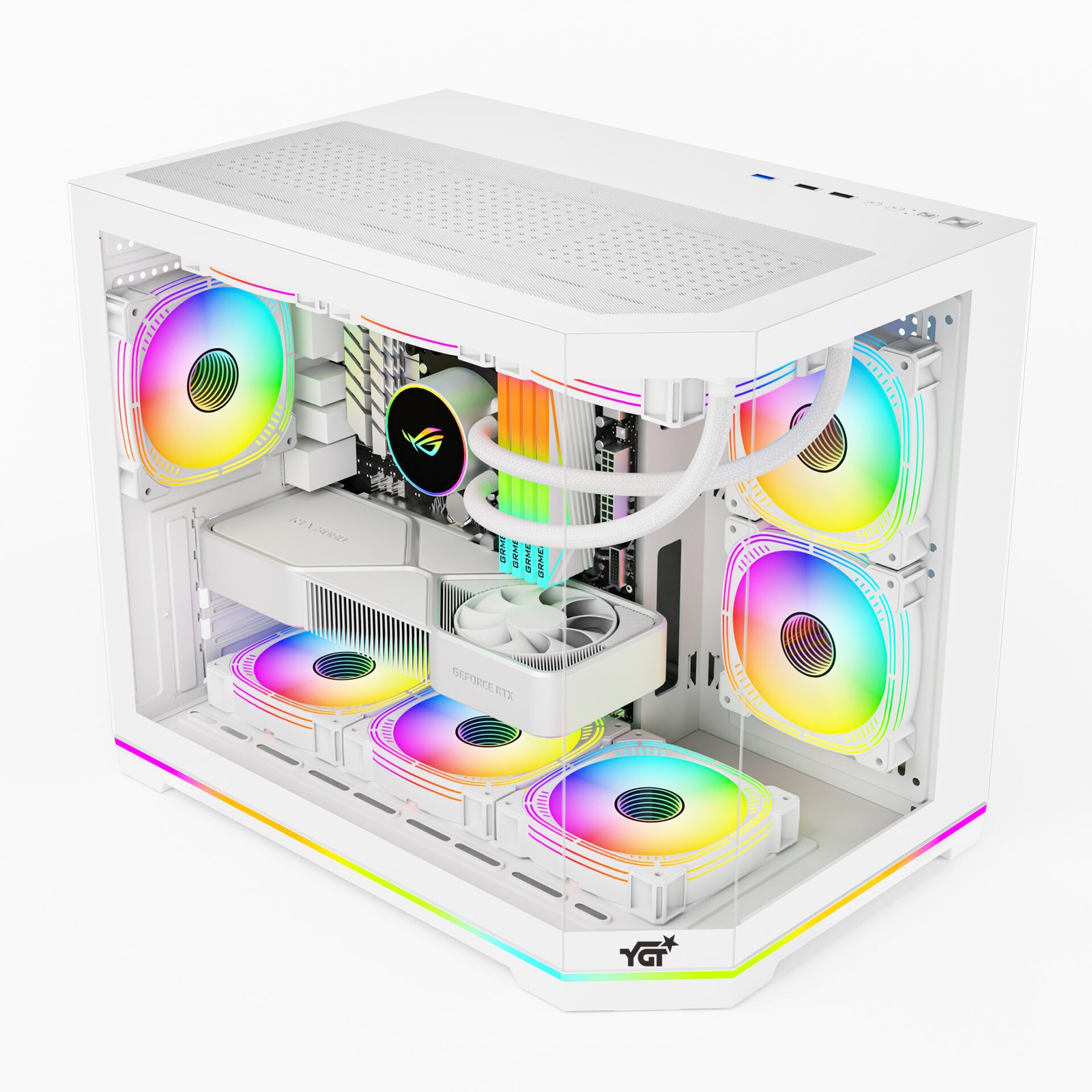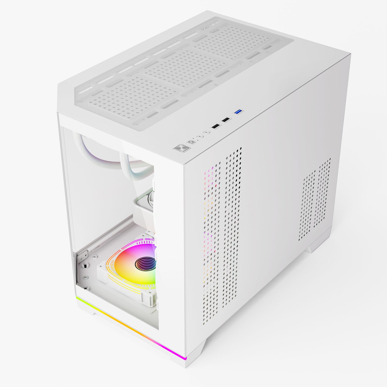 - Bottom LED Strip: can be synced via 3-pin ARGB or controlled via LED Button